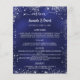A classic wedding program and menu. A navy blue background. The blue colour is uneven. White text. Decorated with faux silver glitter, sparkles. Personalise and add your name, date and both your program and the menu.