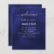 A classic wedding program and menu.  A navy blue background. The blue colour is uneven. White text.  Personalise and add your name, date and both your program and the menu.