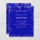 A classic wedding program and menu. A royal blue background. White text. Decorated with faux silver glitter, sparkles. Personalise and add your name, date and both your program and the menu.