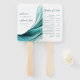 Introducing this unique Modern Wedding Event Timeline Fan, featuring a refreshing emerald green abstract design.  These Programs will not only guide your guests through your wedding day, it's a unique keepsake of your celebration while keeping your guests cool. A detailed timeline ensures guests don't miss a moment, from the soulful ceremony to the lively dance floor. Make your wedding celebration unforgettable with these Modern Wedding Event Timeline Fans.