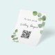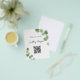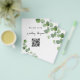A chic white background. Decorated with watercolored eucalyptus greenrey, sprigs. Personalise and add your own QR code to your website with the wedding program.