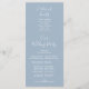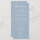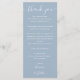 An elegant dusty blue wedding celebration thank you reception card, personalised with your special thank you message set in stylish typography and program of events and wedding party on the reverse. A special keepsake thank you for your guests. Designed by Thisisnotme©