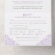 Wedding purple white leaves photo meal RSVP All In One Invitation