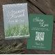 Wedding share your photos upload QR code link winter wedding portrait format card. Personalise with your own wedding upload page via QR code link details, your names and thanks. Ideal for a formal wedding, to get your guests to help share the love and capture your day. Other matching items are available. © Original hand painted of winter trees by the lake and design by Sarah Trett for www.mylittleedenweddings.com on Zazzle.