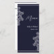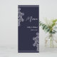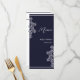 Wedding Reception Navy and White Elegant Menu Card for your Reception Dining Accessories. Created with decorative white trim on a navy background, the front text includes: MENU, The Bride and Groom's Names and Wedding Date. The reverse text includes: MENU, along with Appetizer, Entre and Dessert Selections in navy text on a white background. To personalise, simply insert your details into our easy template, replacing the sample text. Be sure to view the entire Wedding Navy and White Elegant Collection for matching cards and accessories.