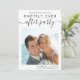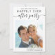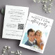 Modern and chic elopement or private wedding announcement and reception save the date featuring your photo and "Save The Date For Our Happily Ever After Party" in a mix of simple typography and a trendy script with swashes. Add your first names, reception date and location. On the reverse side, personalize your wedding announcement, create a QR code linked to your wedding website for your guests to scan for more information and add your names in a signature-like script.