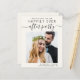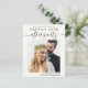 Modern budget-friendly light cream elopement / private wedding announcement and reception save the date that features your photo and "Save The Date For Our Happily Ever After Party" in a mix of simple typography and a chic script with swashes. Under your photo, add your names and reception date and location; on the back side, personalise your wedding announcement, input your wedding website address to create a QR code for your guests to scan for more information and add your names in a signature-like script.