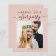 Chic budget-friendly blush pink elopement or private wedding announcement and reception save the date that features your photo and "Save The Date For Our Happily Ever After Party" in modern typography and a stylish script with swashes. Add your names, reception date and location; on the back, personalise your wedding announcement, input your wedding website address to create a QR code for your guests to scan for more information and add your names in a signature-like script.