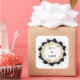 The size is perfect and the design has a softness with the beautiful flowers around the edges. The black lettering on the white background is sharp. It stands out beautifully. I love the Mixture of font styles as it catches the eye.