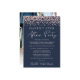 Wedding Reception Rose Gold Glitter Photo Blue Announcement