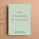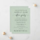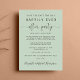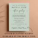 Modern sage green save the date announcement for a reception or party to celebrate your elopement or small private wedding. "Save the Date For Our Happily Ever After Party" is written in simple typography and an elegant script with swashes. Personalise your wedding announcement and add the reception save the date details and your names in a signature-like script. On the reverse side, add your first names and wedding and reception dates.