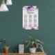 This Wedding Reception Seating Chart features a lovely White and Purple Floral design that will help your wedding reception guests find their tables and also match your chosen wedding colors. The Chart measures 20X30 inches (50.8x76.2cm) and can be effortlessly mounted on a board or wall. The guests' names have been organized alphabetically for each table, ensuring a smooth seating arrangement. If you require a different size, feel free to explore other options that maintain a similar proportion.