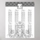 A wedding reception seating chart is an elegant way to direct your guests to their tables instead of using place cards. You can also keep your seating chart as a momento of your wedding and the people who celebrated with you. This wedding seating chart features a black damask pattern on a grey background and is designed to fit in a standard frame and comes in the following sizes: 11x14, 15x19 and 23x29. You can supply your own frame, or order your wedding seating chart with a frame included. We also offer a square version of this wedding seating chart.