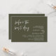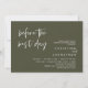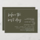 Announce your happily ever after in style with our modern olive green theme design (before the best day) wedding rehearsal celebration invitation card. It is ideal for couples who have decided to celebrate the night before their big day. With its sophisticated yet playful design, this invitation is sure to set the tone for an unforgettable event. The invitation card features modern romantic script design, adding a touch of timeless elegance to your celebration. Designed by TeeshaDerrick