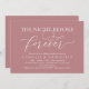 Planning a wedding Rehearsal Dinner celebration with the to-be Bride and to-be Groom, before their BIG day? Invite the guests with this "the night before forever" Perfect modern romantic dusty rose pink Wedding Rehearsal Dinner Invitation Card.