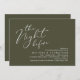 Announce your happily ever after in style with our modern classy aesthetic rustic olive green theme design (The Night Before) wedding rehearsal celebration invitation card. It is ideal for couples who have decided to celebrate the night before their big day. With its sophisticated yet playful design, this invitation is sure to set the tone for an unforgettable event. The invitation card features modern romantic script design, adding a touch of timeless elegance to your celebration. Designed by TeeshaDerrick
