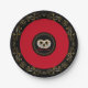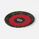 These richly designed paper plates are great for serving up some fun (and easy clean up too) for your next wedding event or anniversary party. Preformatted text [which you can change] has room for your two names. Shown here is a bright Red inner rim and a double wedding ring print in the centre over chic Black background. Double Gold coloured border frills on the Black outer border and on the inner area round the wedding rings print. Personalise!