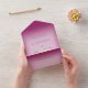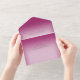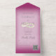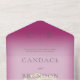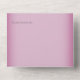 AVAILABLE WITH OR WITHOUT A QR CODE TO SCAN. This simple yet elegant design has a modern look, with two interlocked gold wedding rings on a soft white blur overlay on a soft fuchsia pink background. Personalised All-In-One invitations are a unique combination of both a beautifully printed custom invitation with an easy to tear off perforated RSVP postcard. And they are so easy to use! You simply fold, then seal the back flap with the three included clear stickers, and mail. And when your guests receive your custom invite, they just tear the perforated RSVP Card off and drop it back in the mail to you!
