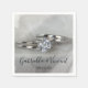 The pretty personalised Wedding Rings on Grey Paper Napkins will make an elegant addition to your engagement party, bridal party or marriage reception. These classy customisable disposable napkins feature a softened photograph of a round diamond engagement ring and wedding band with grey background.