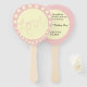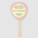 A romantic modern wedding favor to have on hand on a warm hot summer wedding day. Love is written in pastel rose in hand lettering inside of large cream circle. Smaller geometric cream polka dots surround the pink border. Back has a little poem with area to personalize with Bride and Groom's first names an date of wedding. Original Art design and Poem © TamiraZDesigns.