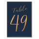 Wedding rose gold copper glitter navy table number