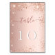 A rose gold background, decorated with faux sparkles. Personalise and your table numbers.