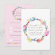 Double-sided simple modern colourful watercolor boho feathers and beads wedding wreath art RSVP. Customise with your own name and reply details. White background on front and pink on the reverse, but you can also change the background colours to suit your wedding. Original watercolor art and design by Sarah Trett for www.mylittleedenweddings.com