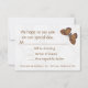 RSVP card from the copper chocolate brown line of the Butterfly Brocade Collection for Weddings. There will be four other jewel-tone colorways available, peacock, purple, red and a lovely fern green. The background is an intricate brocade design, it is not raised, it will be printed flat. The butterflies have the appearance of stained glass and like wise are not raised. Both the colour and the white section for text are in the brocade pattern. Also available will be items such as postage, table numbers, table place-cards, thank you cards, Save the Date, reception,save the date cards as well as other matching products.