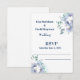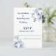 This wedding RSVP card is shown in the white matte card paper with a modern layout of a watercolor art print of lovely blue and white flowers.