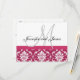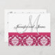 Wedding RSVP Card Hot Pink Damask Monogram & Names
