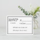 A simple, fun, modern RSVP card in black and white. On the front your guests can write the number of the guests and on the back they can pick their entrees.