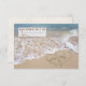 Beach hearts in sand with names in window view of ocean with frothy surf for wedding RSVP