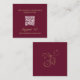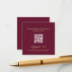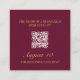 Burgundy and chartreuse wedding RSVP card with a QR code and a monogram locket illustration on the back.