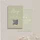 This design features an RSVP card with a QR code, with sage green background, minimal, minimalist, online, our website, with calligraphy elegant script, a simple style.