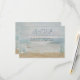 Ocean beach with starfish and blue floral plants in sand for wedding RSVP