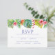 Tropical watercolor floral arrangement with tropical flowers on the backside also. All type and background colour is customisable.