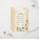 Wedding Rustic Golden Frame White Floral Peach Save The Date