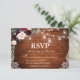 Rustic Wedding Wood String Jar Lights Lace Watercolor Burgundy Marsala Blue Floral RSVP Card