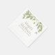 elegant sage foliage leaves Baby's breath floral wedding paper napkin. Custom personalised with bride and groom names and wedding dates. With beautiful botanical greenery. A simple and classy design for your wedding reception, engagement party, or any wedding event.
