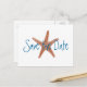 Blue Save-the-Date postcard with starfish image.