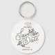 Wedding Save the Date Calligraphy Botanical White Key Ring