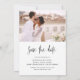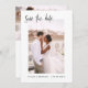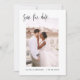 Wedding Save the Date Cards that have a photo on the front and back. The Save the Date cards contain a modern hand lettered cursive script typography that are elegant, simple and modern to use after you minimalist simple wedding day celebration.