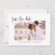 Wedding Save the Date Cards that have a photo on the front and back. The Save the Date cards contain a modern hand lettered cursive script typography that are elegant, simple and modern to use after you minimalist simple wedding day celebration.