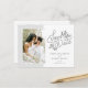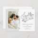 Wedding Save the Date Photo Script Botanical Grey Postcard