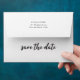 Wedding Save the Date envelope featuring black and white simple calligraphy and return address (pre-printed/self addressed). Easily customise with your wedding details.