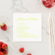 Wedding Script names Couple Fun Facts chartreuse Napkin