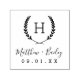 Create a monogrammed wedding stamp to personalise favours, welcome bags or stationery. Personalise the template with the bride and groom's names or monogram initials. Add your wedding date, the city, state or venue name or any other custom text. This modern rustic logo-style design has a laurel branch frame with your monogram initial. Use the design tools to add more text or edit the fonts and layout.