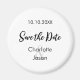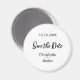 A Save the Date magnet for your wedding. A stylish white background, black text. Personalise and add your names and wedding date.