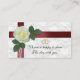Wedding place or seating card white rose with burgundy red ribbon and pearls on lace pattern background, fully customisable for your occasion