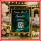 Wedding seating chart QR, emerald green QR sign, white font seating chart, gold elegant seating, luxe digital seating, green white QR chart, custom seating QR, chic wedding seating, luxury seating display, emerald gold reception